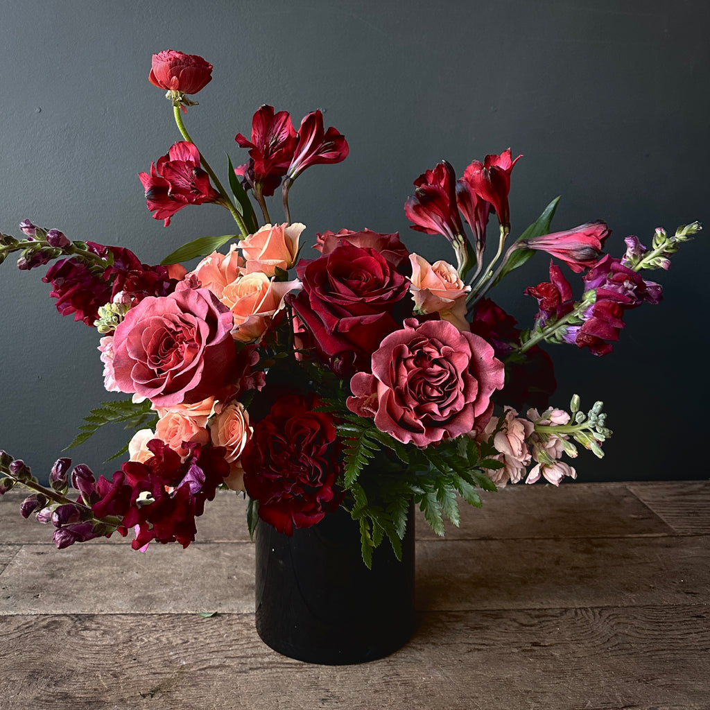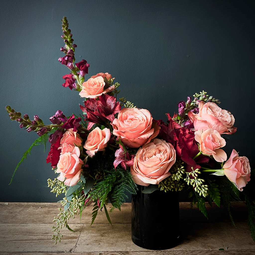 Please note: flower selection is based upon seasonal availability and may vary slightly from the image shown. The design will stay true to the aesthetic of the pictured arrangement.